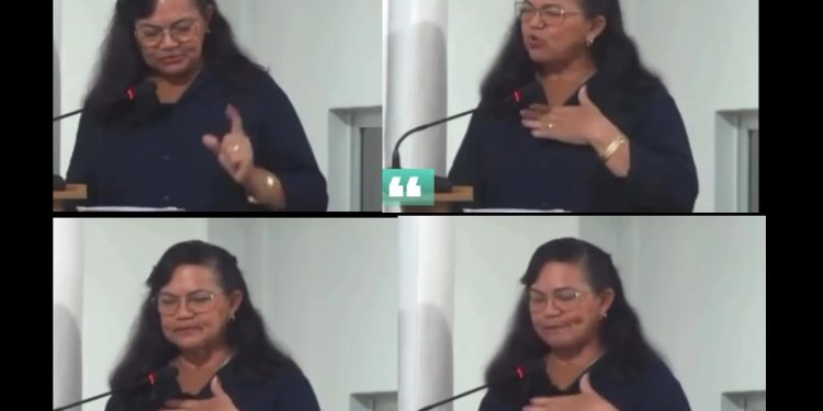 O vídeo dela defendendo que tem mulher que merece apanhar e que mulheres inventam que apanharam para incriminar homens. Além de vereadora, ela é professora na cidade, onde fez o discurso nesta segunda-feira (29).