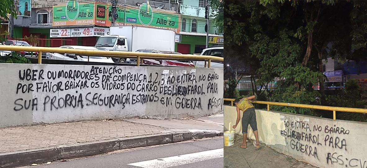 “Atenção: Uber ou moradores da Compensa 1, 2 e 3, ao entrar no bairro, por favor, baixar os vidros do carro e desligar o farol (sic), para a sua própria segurança, estamos em guerra”, dizia o recado emitido pelos criminosos.