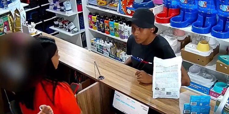 MANAUS – Imagens de uma câmera de segurança filmaram mais um assalto em Manaus. Um bandido entrou numa clínica veterinária com arma de fogo nesta terça-feira (12), na rua Nossa Senhora da Conceição, no bairro Tancredo Neves, na zona leste de Manaus. Nesta quarta-feira (13), a polícia pediu ajuda para localizá-lo e prendê-lo.