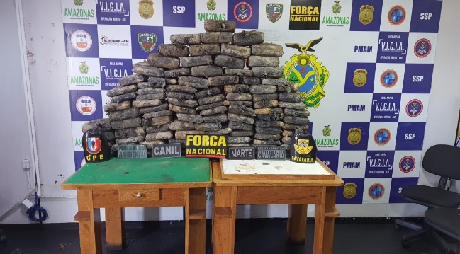 Os dois traficantes foram presos com os 141 quilos de maconha do tipo ‘skunk’ passando pela comunidade Itapeuá. Durante revista, as equipes encontraram embaixo da malhadeira o saco carregado com as drogas. Então seguiram viagem e chegaram na Ilha do Botija, onde havia mais drogas.