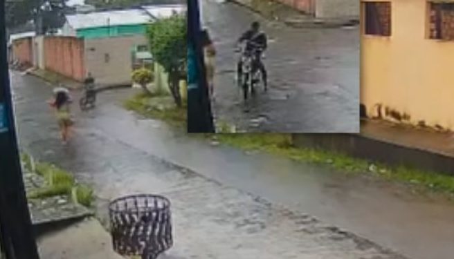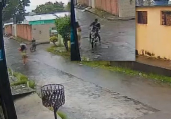 Neste domingo (5), ele aproveitou que a rua Rio Tucumã, bairro Colônia Terra Nova, estava vazia, e levou a bolsa de uma vítima indefesa, conforme aparece no vídeo.