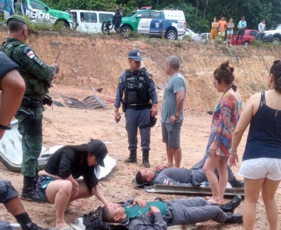 MANAUS (AM) – Três policiais ficaram feridos após serem arremessados para fora da viatura ao caírem numa ribanceira durante chuva na tarde desta terça-feira (15). O acidente aconteceu no quilômetro 22 da estrada AM-010.