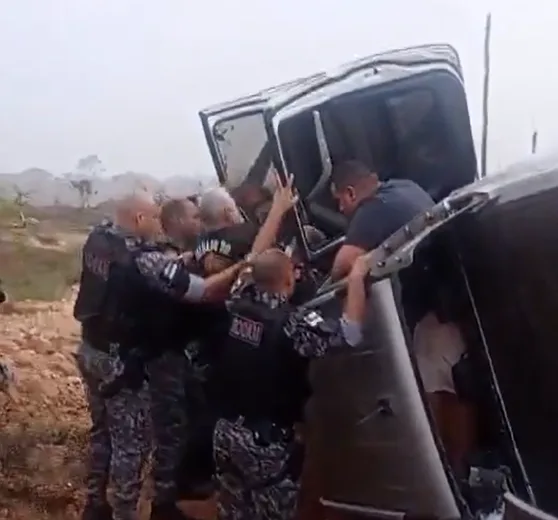 MANAUS (AM) – Dois homens foram resgatados após capotarem com uma picape na rodovia BR-319, na tarde do último sábado (28). Policiais militares realizaram uma força-tarefa para garantir a segurança das vítimas.