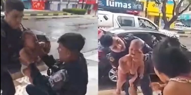 BRASIL – Uma bebê foi salva por policiais militares de morrer engasgada com açaí neste domingo (3), na rua Barão do Rio Branco, em Castanhal, no Pará.