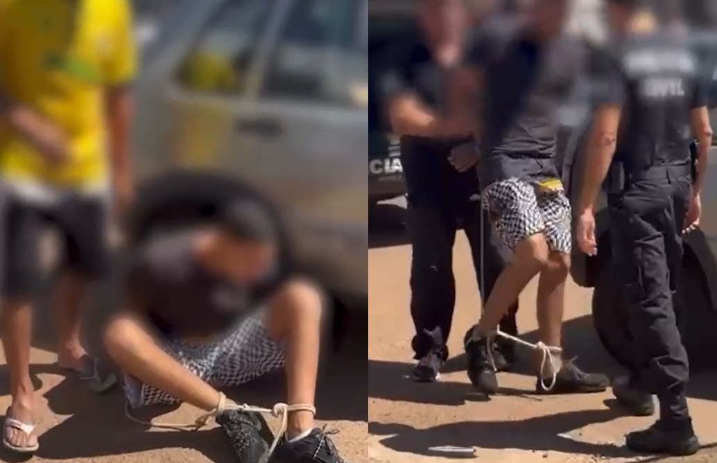 BRASIL – Um ladrão foi surpreendido por um policial de folga no mento em que tentava roubar um carro na QNM 2, que fica na cidade de Ceilândia Norte, no Distrito Federal. Ele acabou amarrado e depois preso, neste sábado (8).
