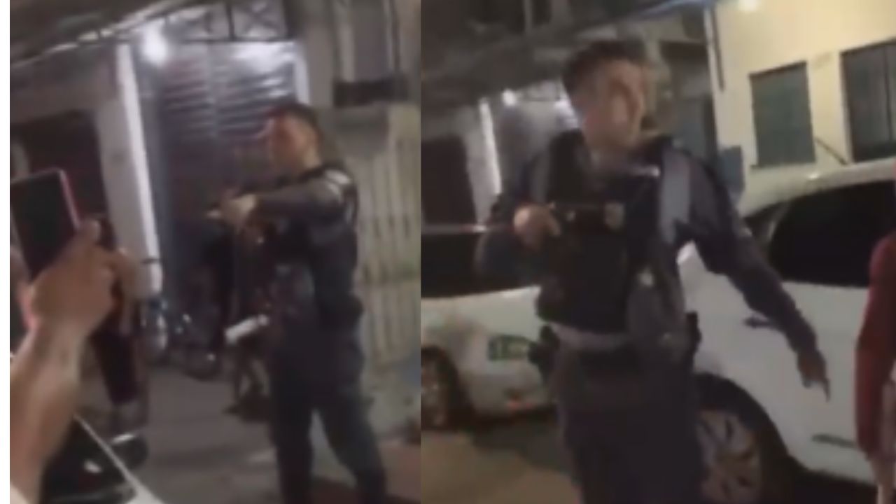 Imagens feitas por populares mostram o momento em que o militar é cercado por um grupo de pessoas. Durante a confusão, ele tenta manter o controle da situação, com a arma presa no coldre peitoral da farda, enquanto ordena que os moradores se afastem.