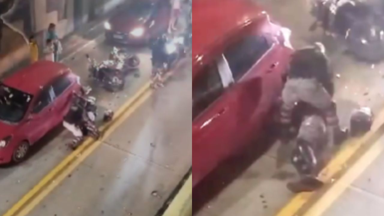 O agente estava em um comboio de moto quando passou em alta velocidade e colidiu no veículo Ford Ka, de cor vermelha.