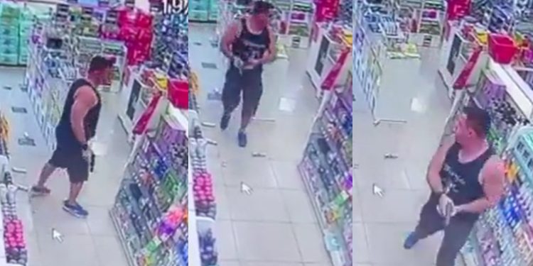 BRASIL – Um policial de folga está sendo celebrado nas redes sociais, depois de matar um bandido que entrou na farmácia com dois comparsas para assaltar clientes e funcionário. Rápido no gatilho, ele matou um criminoso, evitou o assalto e não feriu ninguém.