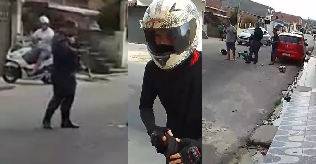 MANAUS – Um policial trocou tiros com dois bandidos nesta quinta-feira (5), prendeu um dos criminosos e ainda salvou o motoqueiro que chegava no trabalho. no Riacho Doce, Zona Norte. O bandido ainda foi baleado.