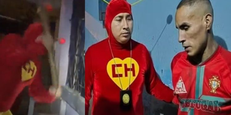 MUNDO – Um policial peruano viralizou ao se fantasiar de Chapolin durante operação que prendeu um traficante na quinta-feira (17/). Ele chegou até a usar uma marreta para arrombar a porta.