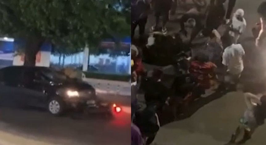 Um vídeo mostra o desespero e a aglomeração das pessoas em torno do carro, enquanto um homem consegue sair do capô. O caso aconteceu na quinta-feira (17).