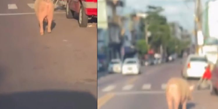 MANAUS – Um porco perdido foi filmado dando uma volta aleatória na rua na manhã deste sábado (19), em Manaus. A cena foi registrada no bairro Educandos, na zona sul.