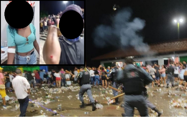 Vídeos nas redes sociais mostram os policiais disparando tiros para dispersar as pessoas. Um deles disparou tiros de bala de borracha.