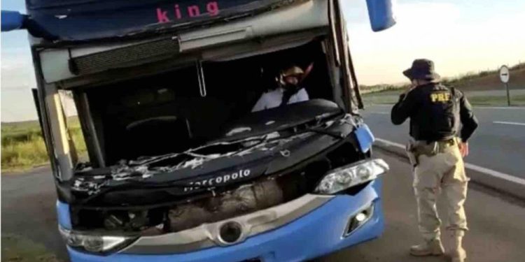 BRASÍLIA – Viralizou nas redes sociais um vídeo onde a Polícia Rodoviária Federal flagra um motorista usando um capacete para dirigir de um ônibus sem para-brisa na BR-050, a caminhão de Brasília. O condutor disse que usava o equipamento para proteger os olhos.