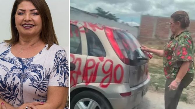 BRASIL – A primeira-dama de Agrestina, em Pernambuco, perdeu a linha e pichou o carro da amante do marido, o prefeito Josué Machado (PSB).