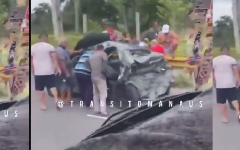 Manaus (AM) – Um veículo do tipo Prisma foi completamente arruinado em um acidente com um micro-ônibus na Avenida das Flores, na tarde de hoje.