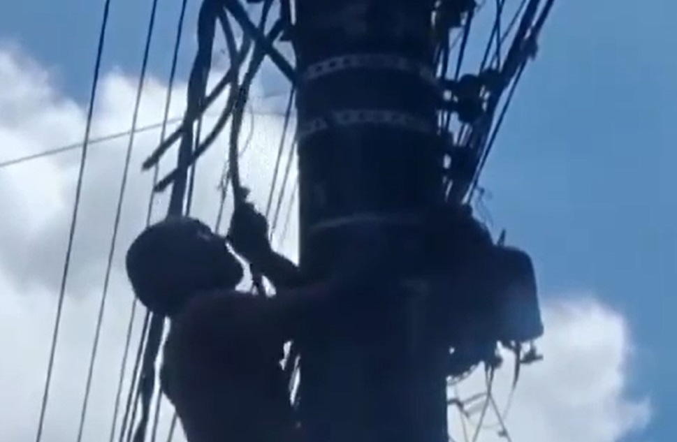 MANAUS – Sem nenhuma proteção, um suspeito se pendurou no poste no bairro Tancredo Neves, na Zona Leste de Manaus, neste fim de semana. Ele furtou fios, crime que tornou-se rotina na cidade.