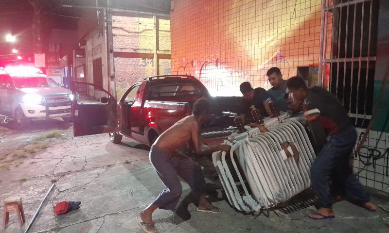 MANAUS (AM) – Felipe De Lima Mendes, de 23 anos, Bruno De Lima Mendes, de 20 anos, João Wilber Silva Oliveira, de 28 anos, e Robert Cabral Lima, de 21 anos foram presos em flagrante pelo furto de um transformador de energia na madrugada desta quarta-feira (7). O crime ocorreu na rua Salvio Belota, bairro Novo Aleixo, Zona Norte de Manaus.