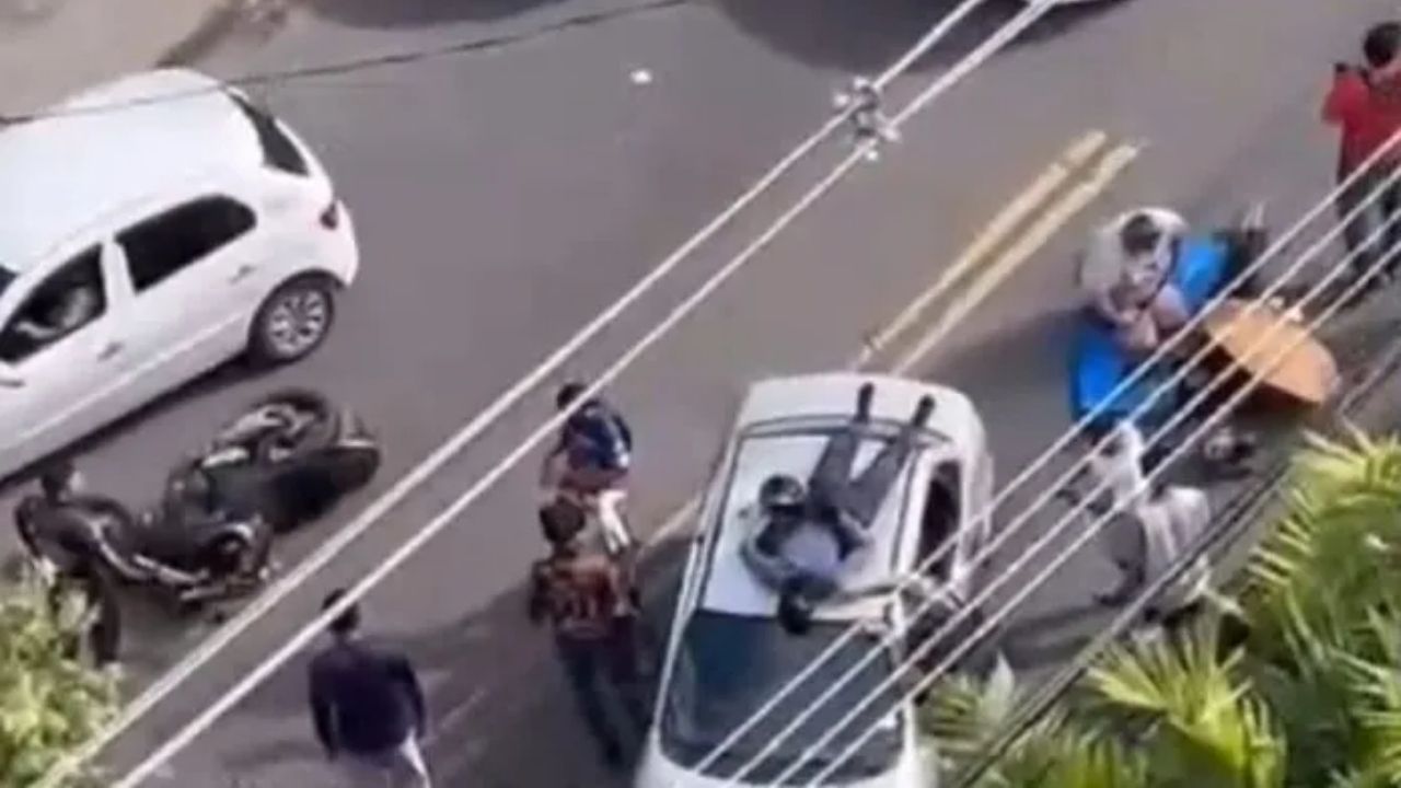 MANAUS (AM) – Um vídeo que parece ser os bastidores de um filme de ação foi registrado na tarde de sábado (8), onde mostra um motociclista que acabou indo parar em cima de um carro durante um acidente entre a avenida Umberto Calderaro e a rua Belo Horizonte, bairro Adrianópolis, zona centro-sul de Manaus.