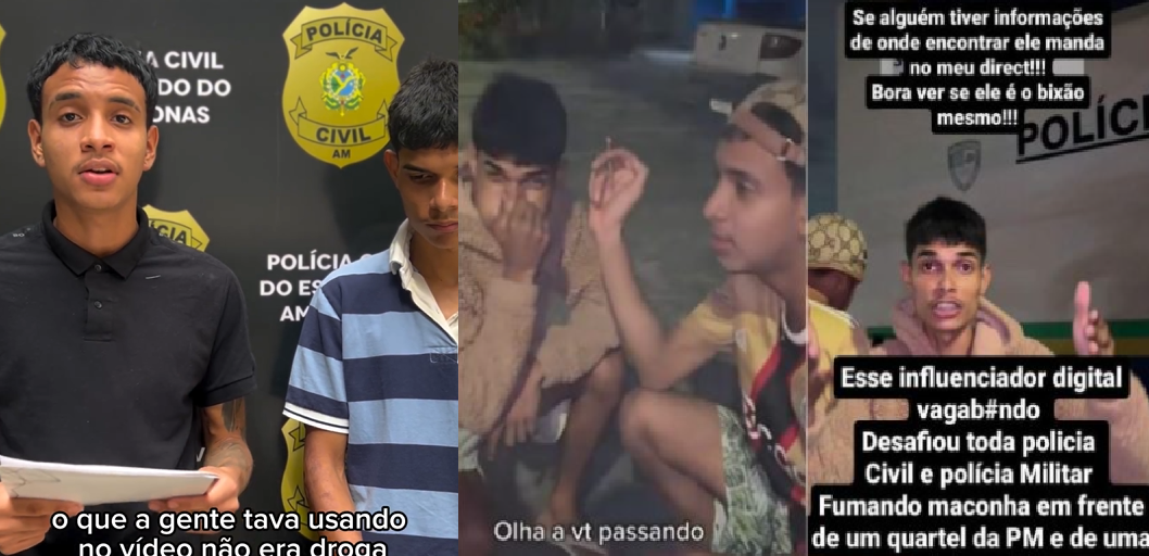Empolgados, eles disseram que “com a polícia não se brinca” e que estavam arrependidos. Na noite anterior, eles estiveram na frente da delegacia debochando. “Aí rapaziada, a parada é o seguinte, família, nós vamos ser o primeiro influenciador a fumar maconha na frente da delegacia”, diziam.