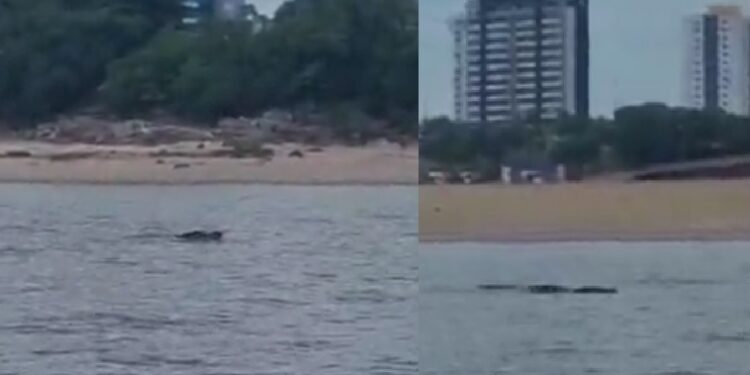 Que tal dar um mergulho na Ponta Negra em plena terça-feira (18) e relaxar? Foi o que fez um banhista especial em Manaus hoje. Um jacaré, tamanha “GG” foi filmado por internautas no balneário público.