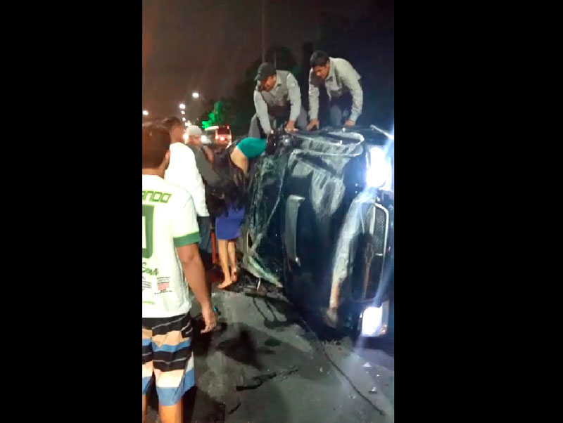 Outro capotamento ocorreu na madrugada desta segunda-feira (26) na avenida Autaz Mirim, nas proximidades do supermercado Rodrigues, na Zona Leste.