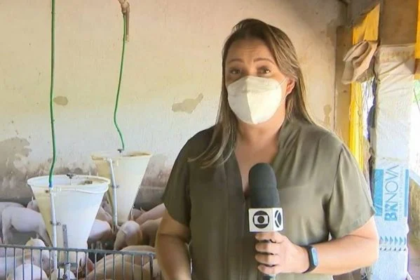 A repórter tentou gravar uma passagem perto dos animais, mas a sua presença deixou os porquinhos agitados. A cena foi ao ar no Globo Rural desse domingo (19).