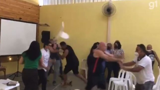 No entanto, um dos moradores foi informado que não poderia votar por não cumprir alguns requisitos internos. Foi quando a confusão começou, com o homem insultando os vizinhos e gerando agressão física.