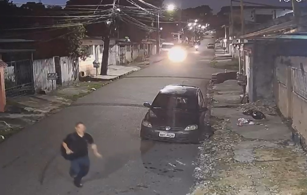 O homem levantou cedo para ir para o trampo e foi surpreendido por criminosos. Ele conseguiu correr, mas poderia ter levado um tiro.