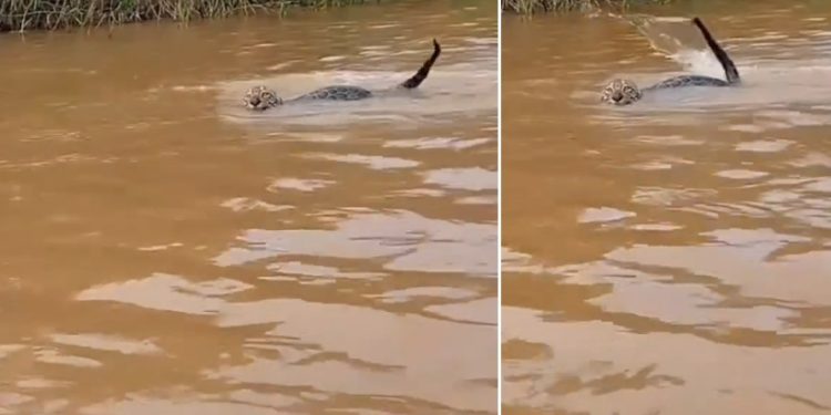 AMAZONAS – Um ribeirinho flagrou o momento em que uma onça-pintada atravessou soberana o rio Juruá, no interior do Amazonas, e mostrou todo o seu respeito pela natureza que pulsa na Amazônia nas redes sociais.