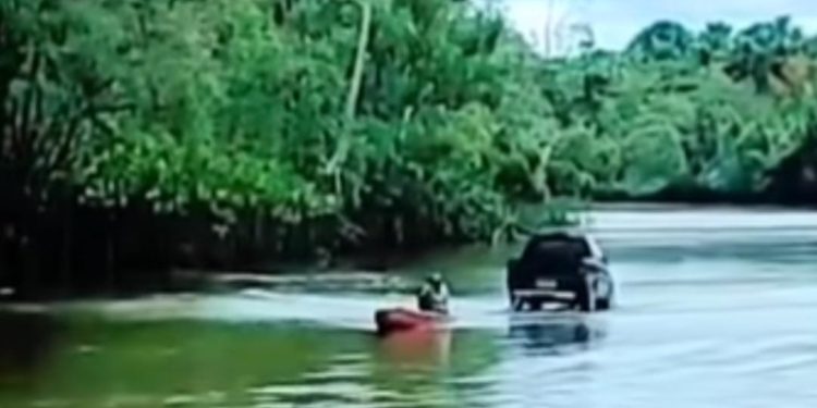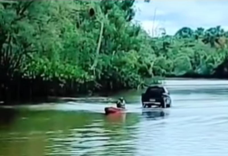 PARÁ| Nesta terça-feira (16), começou a circular nas redes socais um vídeo que mostra um ribeirinho transportando um veículo em uma rabeta. A cena foi vista no Rio Atuá, no Pará.
