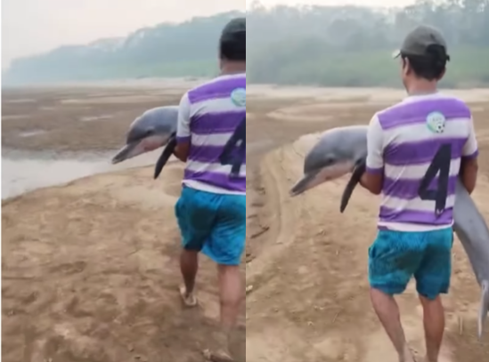 AMAZONAS – Viralizou nas redes sociais o vídeo de um ribeirinho correndo contra o tempo para salvar um boto que tinha encalhado no Rio Madeira, que sofre com a seca. As imagens emocionaram a internet.