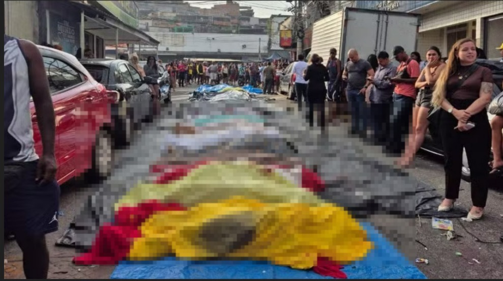 Imagens de Corpos na Praça São Lucas na Penha correm o mundo. Do total de mortos, quatro são policiais. O Governo do Rio de Janeiro ainda não identificou as vítimas, e nem mesmo deu conta de recolher os corpos.