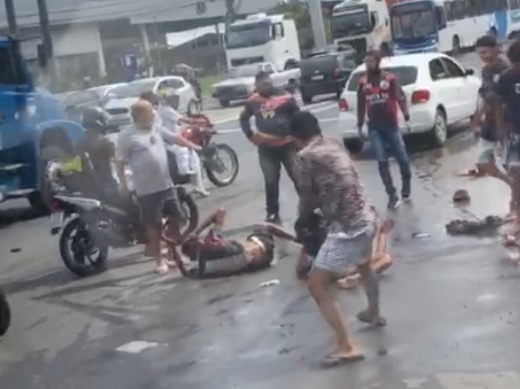 A dupla que não teve o nome revelado foi identificada e derrubada de uma moto após uma série de crimes na altura do bairro União da Vitória, perto da barreira. Eles foram chutados, socados e apedrejados.