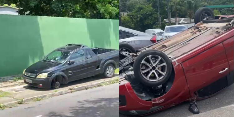 MANAUS (AM) – Uma roda que se soltou de uma picape Montana provocou um acidente grave na manhã desta quinta-feira (9) na avenida Rodrigo Otávio, no bairro Japiim, Zona Sul de Manaus. O incidente fez com que um Fiat Mobi capotasse após ser atingido pela peça, que atravessou a pista em sentido contrário.