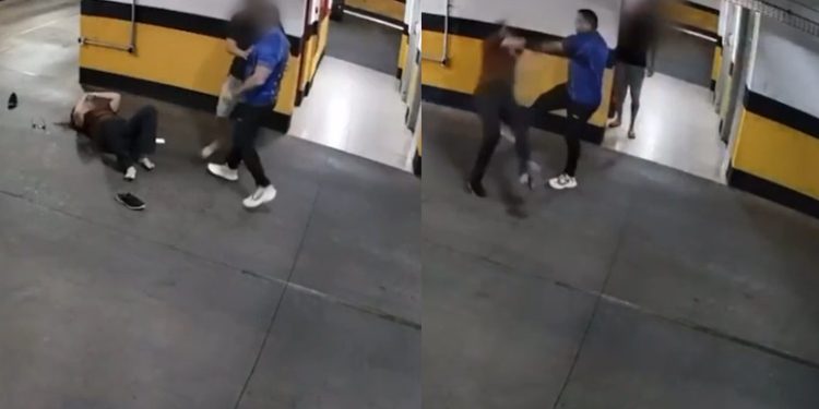 Ela foi agredida com chutes, empurrões e até socos, depois de tentar registrar a placa do carro do policial.