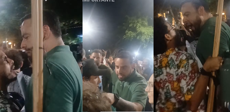 O ato, iniciado no período da tarde, teve seu curso alterado com a chegada do secretário no início da noite, acompanhado por efetivo da Guarda Municipal e pelo referido segurança. Em registros feitos por presentes, Alberto Neto é visto envolvendo-se em discussão acalorada com um professor, elevando o tom de voz e aproximando-se de forma agressiva do manifestante, enquanto Renato, vestindo camisa azul, empurrava participantes da mobilização.
