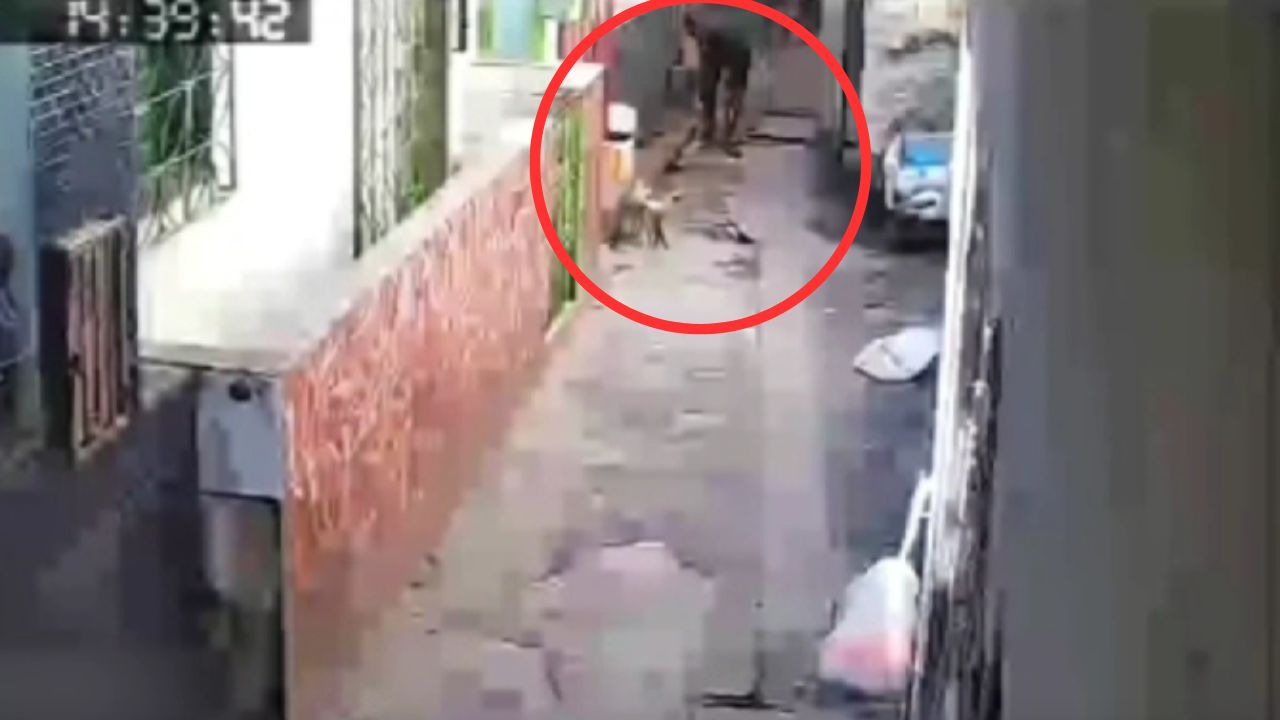 No vídeo da câmera de segurança, um homem aparece caminhando no beco do Frank, bairro Coroado 1, quando se depara com um gatinho. O problema é que ele simplesmente arremessa uma pedra no animal.