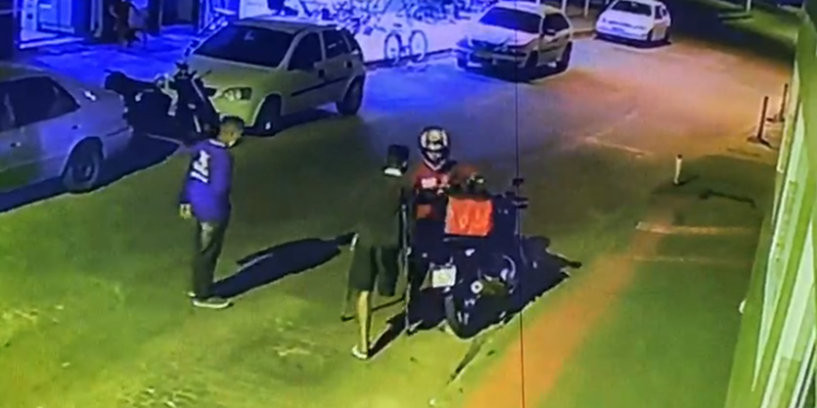 Câmeras de segurança registraram o momento em que o motoboy foi abordado pelos dois homens. Não foi possível ver se eles portavam armas. O suspeito sem a perna afasta o trabalhador e sobe no veículo. Ele então entrega as muletas ao colega, que também sobe na moto como carona. Em seguida, fogem.