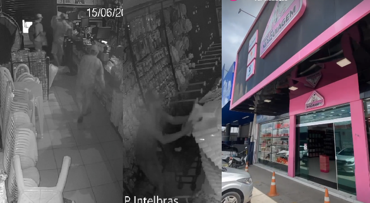 Conforme as imagens das câmeras de segurança, a ação foi rápida. Os criminosos arrombaram a loja e, em poucos minutos, conseguiram saquear grande parte dos itens das prateleiras antes de deixar o local.