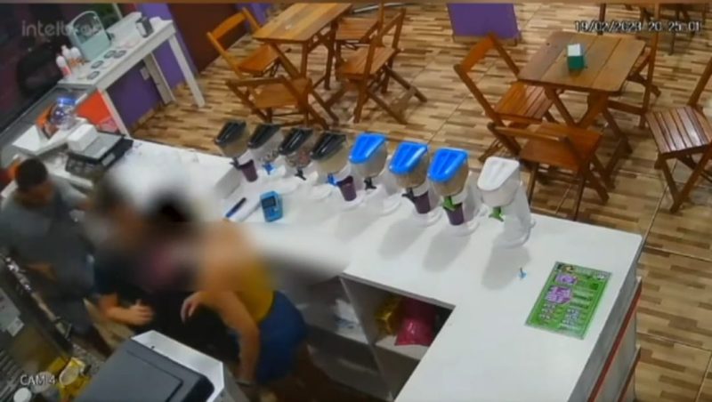 Antes de anunciar o assalto, o criminoso se passou por cliente, pediu um copo de açaí e esperou um momento oportuno para praticar o delito. Primeiro ele rende uma das vítima que está sentada com o celular na mão, logo depois rende a que estaria servindo o açaí. O tempo todo apontando a arma para as duas mulheres.