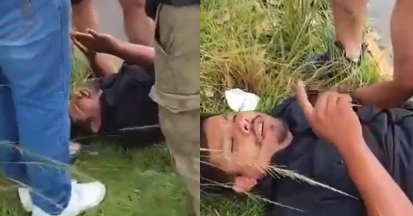 Um homem com uma ripa na mão diz que ele tem sorte de não pegar tiro na cara, mas que já foi decretado. O comparsa dele fugiu e escapou do pior.