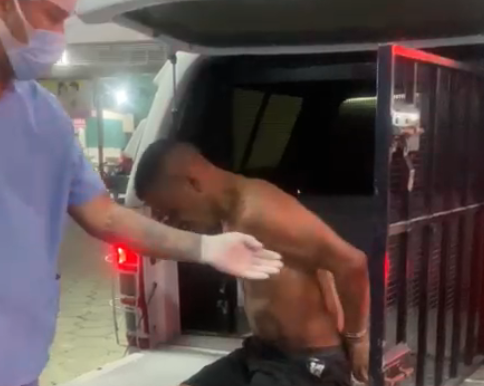 As imagens dele chegando ao hospital viralizaram. De lá ele foi para o 14º Distrito Integrado de Polícia (DIP).