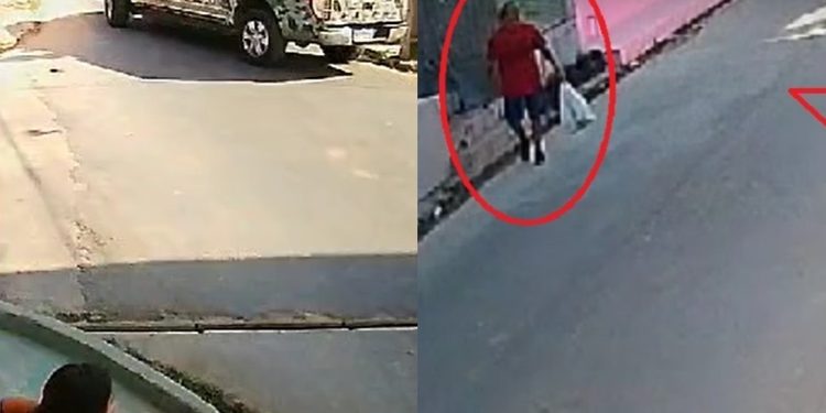 As imagens da câmera de segurança da rua são a pista para que ele seja identificado e preso. Sem alguém tiver informações, ligue no 181.