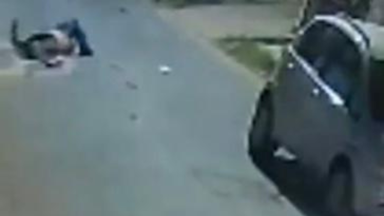 Nas imagens é possível ver que o homem tenta atravessar a rua, quando é atingido por uma motocicleta em alta velocidade.