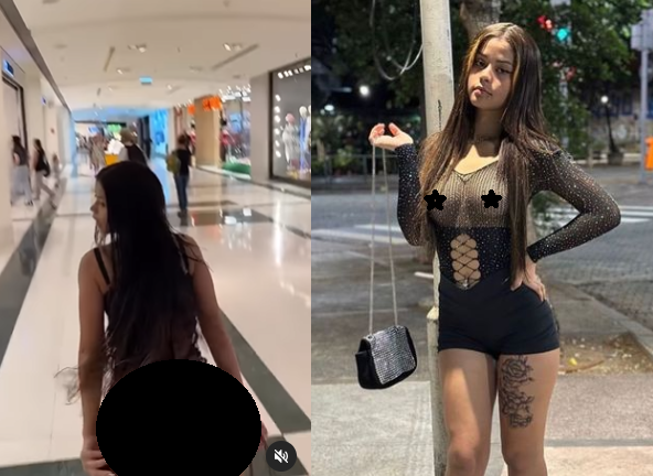 A jovem postou um vídeo ainda dentro do estabelecimento comercial antes de supostamente ser convidada a se retirar. Nas imagens, ela aparece provocante com um vestido preto transparente e com a calcinha à mostra. Ela levanta o vestido e rebola para a câmera.