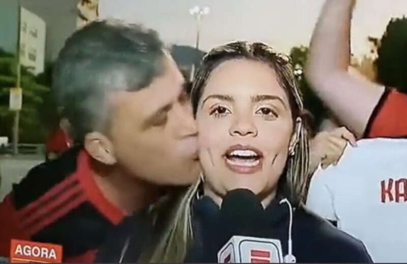 A informação foi confirmada pela jornalista Isabelle Costa, da S1 Live, que acompanhou o caso “O cinegrafista e o auxiliar da emissora seguraram o rapaz para que ele não fosse embora. Por trás das câmeras, o cidadão estava passando a mão na repórter, além do beijo”, escreveu Isabelle em um dos tuítes.