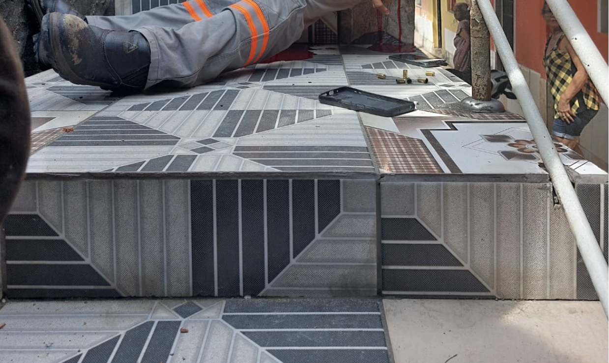 Várias cápsulas deflagradas foram encontradas no chão, na escada onde ficou o corpo. A vítima morreu na hora.