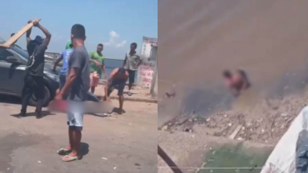 Nas imagens o homem aparece sendo agredido pelo grupo, recebendo um golpe no rosto e depois sendo carregado.