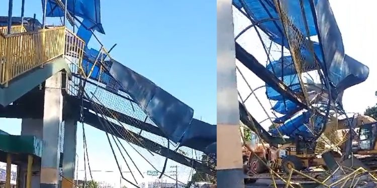 MANAUS – Uma carreta que levava um trator e uma grande escavadeira derrubaram uma passarela na Torquato Tapajós agora há pouco, em Manaus.
